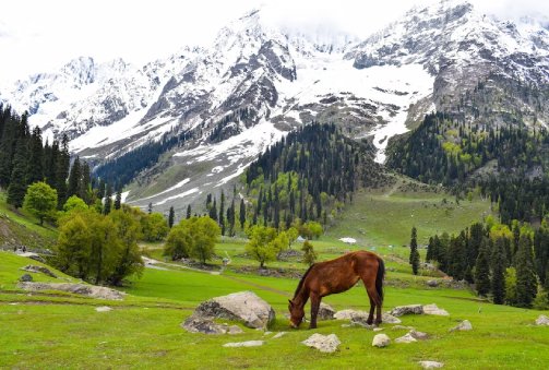 Paseo en pony (opcional): en todo Pahalgam, se le acercarán personas que le ofrecerán paseos a caballo en áreas cercanas.
